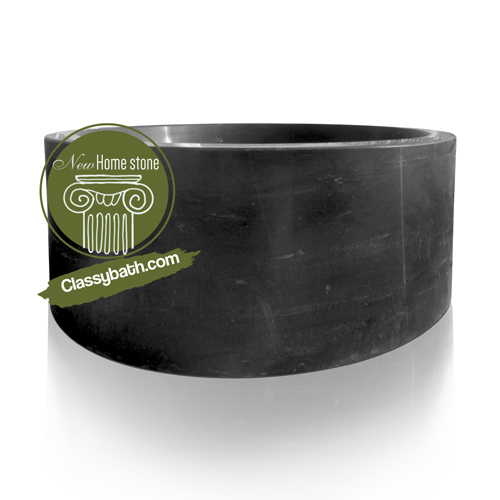 This stunning deep black marble is perfect to add real extravagance to the modern bathroom. The round black bathtub is made from black limestone, which is a sedimentary rock, composed of calcium carbonate fossils. Due to sedimentation, the surface of this pure black bathtub has little whitish marks on its surface.